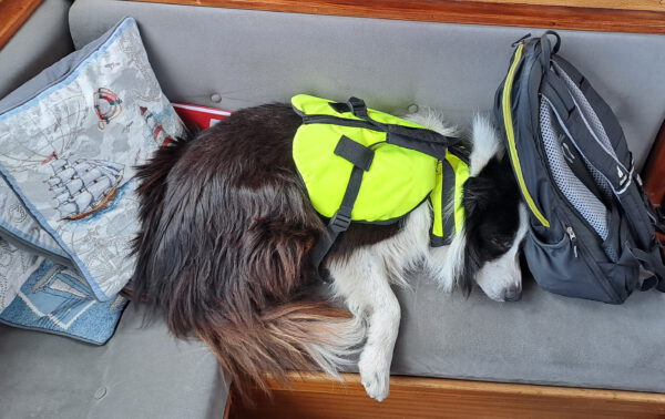 Aber auffrischender Wind (5Bft) ist dann nicht mehr lustig, wenn du in den Hafen kommst und nur Stege in Luv vorhanden sind, du wirst von Steg durch den Wind weggedrückt. Zunächst hatten wir einen Platz in Lee, Gisela wie üblich sofort an Land mit Kimi, ich räume auf. Dann wurde ich aber vertrieben, weil dort Yachten zu Wasser gelassen wurden. Gottseidank war auf dem Leesteg ein Mitarbeiter der Werft und hat die Leinen angenommen. Bis dann die Lambo sicher am Steg lag waren Muckis gefordert.