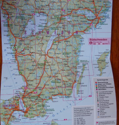 Noch ein kleiner „Ausflug“ ins Maritime. Auf der Karte seht ihr waagerechte und senkrechte Striche. Die waagerechten stellen die Breitengrade, die senkrechten die Längengrade dar. An den Seiten der Karte sind Gradzahlen aufgetragen, z.B. 58° 38´ und 016° 48´. Entfernungen werden an der rechten oder linken Seite gemessen, so sind es von Arkösund nach Nävekvarn ca. 10sm.