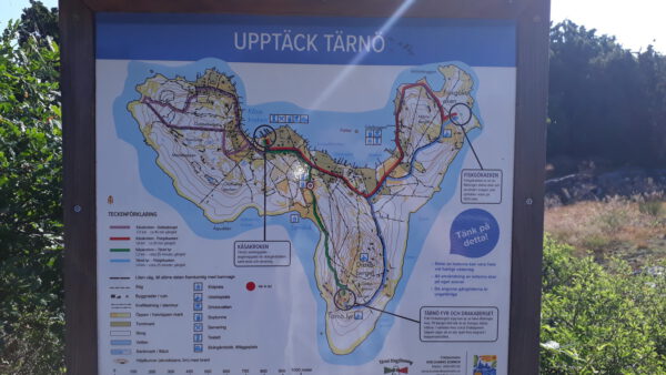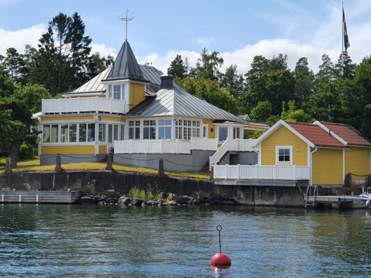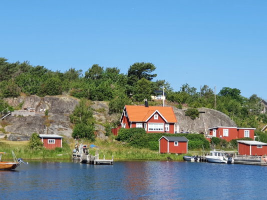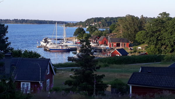 Weit ist es nicht bis Tränö, nur 14 sm Direttissima. Der Wind kommt fast genau von vorne, aber nach passieren der Untiefen vor Hällevik setzen wir trotzdem die Segel. Können zwar nicht Tränö direkt anliegen, aber segeln ist viel besser als motoren. Der Geheimtipp „Tränö“ hat sich wohl rumgesprochen, es ist voll. Wir kriegen noch einen Platz am Pier der Fährschiffe, aber das Gejohle ist erst vorbei, nachdem die letzte Fähre gegen 18 Uhr die Insel verlassen hat.