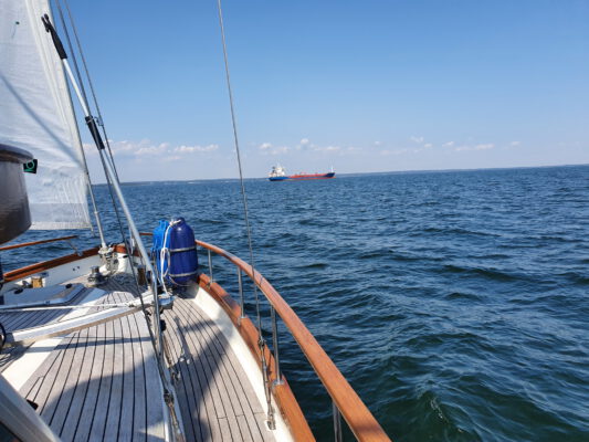 Die letzten 7 sm Ostseewasser liegen vor uns. Es juckt mich in den Fingern, nochmal die Segel zusetzen. Für knapp 4 sm lohnt es sich wahrlich nicht, aber die nächsten 100 sm ist fast nur motoren angesagt – also hoch damit.