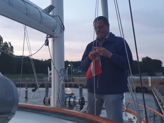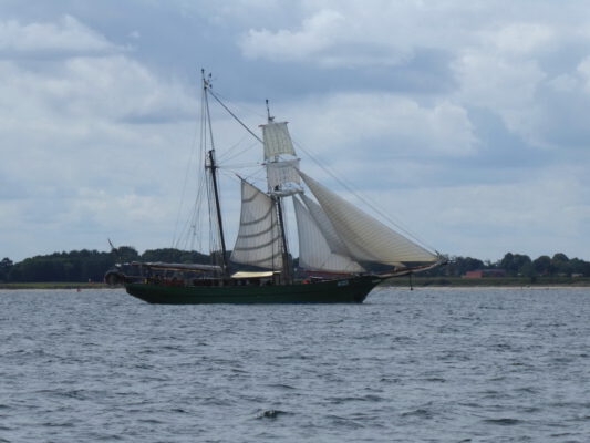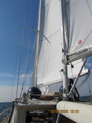Es war ein normaler Segeltag bei schwachen Winden von achtern (hinten), so dass wir zeitweise den Bullenstander setzen mussten.