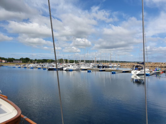 In Gislövsläge machen wir perfekt längsseits hinter einer dicken Nauticat 42 fest. Leider nur kurzfristig. Ich hatte nicht realisiert, dass wir wegen eines Krans an einer verbotenen Stelle lagen. Also nochmal los und in eine Box verlegt.