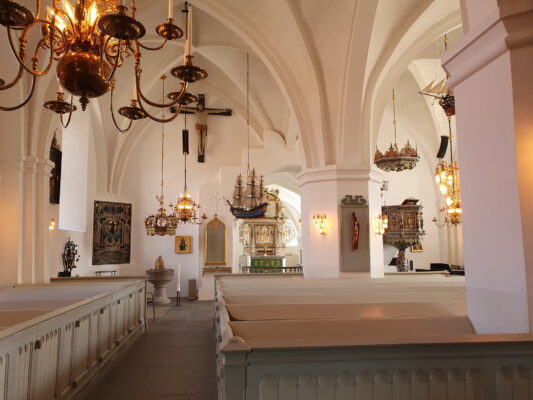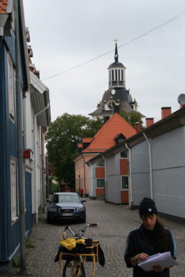 Am Morgen machen wir noch einen Spaziergang durch Kalmar und kommen durch schmale Straßen zum Stortorget und zum Dom. Nicht nur von der Architektur ein beeindruckendes Gebäude, auch innen überraschend: in einer kleinen, abgeschirmten Ecke sitzt eine Familie mit 2 kleinen, spielenden Kindern und Hund.