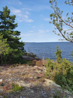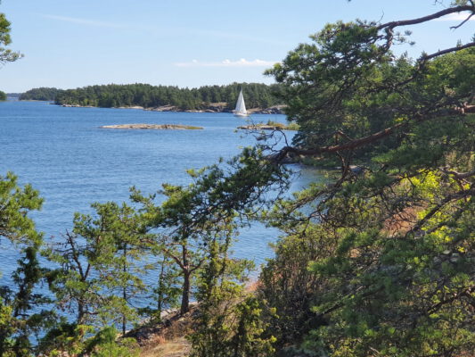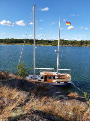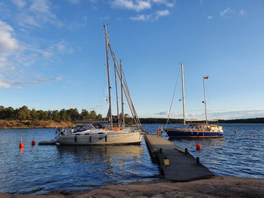 Am Abend kommt ein älteres Pärchen (wie wir) vorbei und wir kommen ins Gespräch. Sie haben früher auch ein Boot gehabt, sind in den hiesigen Schären viel gesegelt und empfehlen uns die Insel Tränö. Ich erwähne das deshalb, weil wir 2 Tage später den Mann mitten auf Tränö durch Zufall wieder treffen.