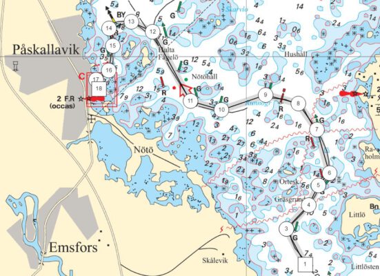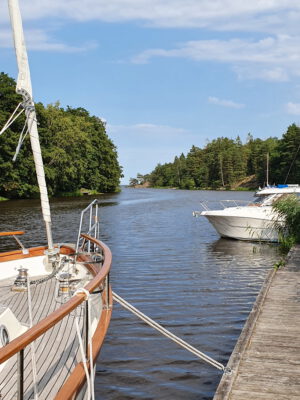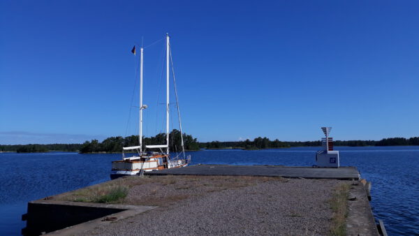 Der „Hafen“ Pataholm wird uns den ersten Schlängelkurs durch die Schären bringen. Die Infrastruktur des „Hafens“ ist bescheiden, ein Stromanschluß und ein Müllbehälter. Dafür beträgt die Hafengebühr nur sek 100, die man doch bitte überweisen möge. Zitat aus dem Segelführer: „Landschaftlich sehr schön gelegene Verladebrücke eines stillgelegten Sägewerks, umgeben von kleinen, bewaldeten Schären. Der idyllische, sehenswerte Ort liegt ca. 2km entfernt.“