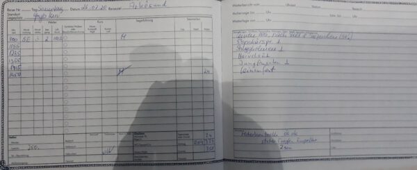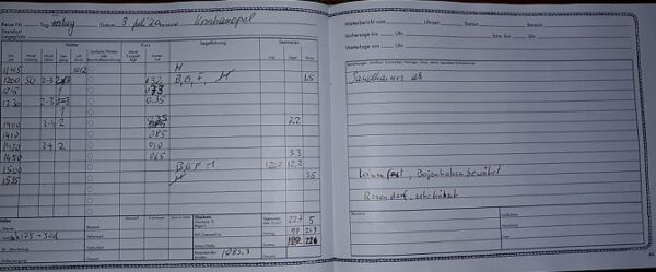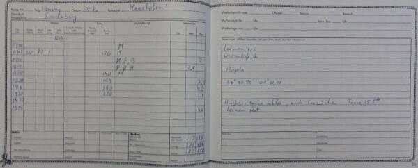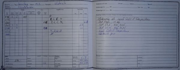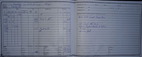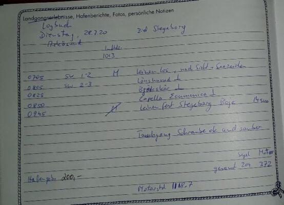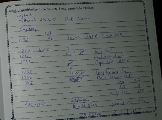 Jetzt kommt die ultimative Herausforderung für den Navigator Gisela. Wo ist die nächste Tonne, in der Seekarte abhaken, zur nächsten Tonne (Soooo dicht unter dem Ufer???), und dann wieder um 30, 40 Grad in die andere Richtung. Hat sie alles bravourös gemeistert. Die letzte Stunde habe ich aus der Seekarte kopiert.