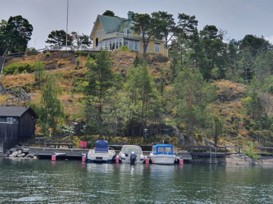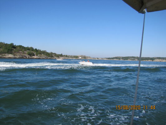 Kaum sind wir am Seezeichen Hundeskär, sehen wir, was wirklich los ist. Im Gegensatz zum Götakanal, wo alles entspannt war mit wenigen Booten ist es hier unglaublich voll. Die Motorboote fahren dicht an uns mit Speed vorbei. Ein Freund hätte gesagt: „Die fahren dir einen Knoten ins Schlüpfergummi!“.