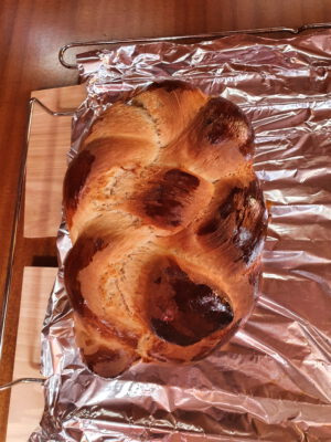 Zu erwähnen bleibt noch der selbst gebackene Zopf, den ich meiner Gisela versprochen hatte. Der Erste im Schiffsbackofen wurde als gelungen gewertet.