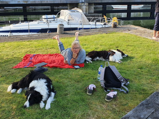 Wie sieht ein Hafentag denn aus, das „dolce far niente“ des Segelns. Wenn ich dann um kurz vor 9 Uhr zum zweiten oder dritten Male wach werde, geht’s erstmal mit den Hunden raus zum Gassi gehen. Anschließend gibt es ein gemütliches Frühstück, Abwasch und die erste Lesestunde. Können auch zwei werden. Dann kommt die große Hunderunde mit anschließendem Kaffee und der nächsten Lese-, Computer-, Tablet- oder Karteneinheit. Spätesten gegen 15 Uhr werden Kekse zum Kaffee gereicht. Zwischendurch wird auch gebastelt, repariert, verbessert oder gedanklich erweitert. Das Gedankliche ist sehr entspannend, kein Mensch merkt, wenn du nicht denkst.
