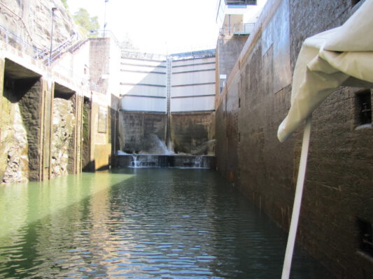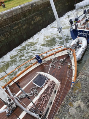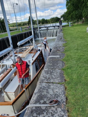 Die Anspannung legt sich dann und die restlichen 12 Schleusen werden wieder mit Ruhe und Genauigkeit abgearbeitet.