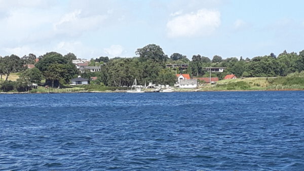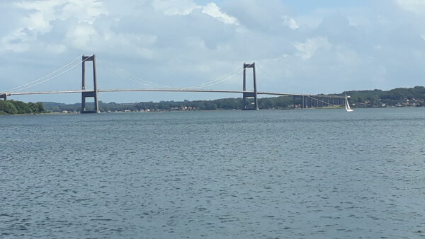 Je näher wir Fredericia kommen, desto stärker wird der Gegenstrom. Zwischenzeitlich haben wir 2 Knoten Strom gegen uns. Hinter der Beltbrücke beginnt Middelfart, aber bis zu unserem Hafen ist es noch ein Stück durch eine Landschaft, die an den Götakanal erinnert.