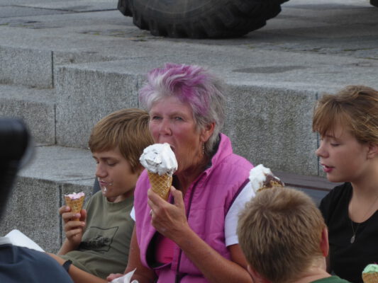 Da wir zeitig angekommen sind, machen wir uns auf den Weg zur Stadt und kommen wieder an Wasser mit Blick auf die Beltbrücke. Hier fällt uns mal wieder auf, das Eis in Dänemark ein Nationaldessert ist. Sogar Ralf steht an für ein Eis, ein großes. Hunger hatte er an dem Abend nicht mehr.