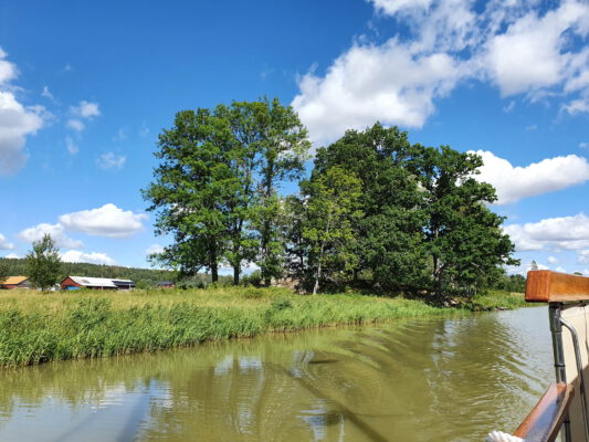 Dieser Teil des Götakanals ist sehr schön, irgendwie verwunschen. Man gleitet durch den Wald und hat das Gefühl, man könnte die Blaubeeren an Land pflücken. Es sieht so ganz anders aus als wenn man zu Fuß unterwegs ist. Unglaublich, dass hier die Fahrgastschiffe durchfahren.