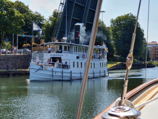 In Trollhättan haben wir dann das Glück, eins der alten Passagierschiffe des Götakanals zu sehen.
