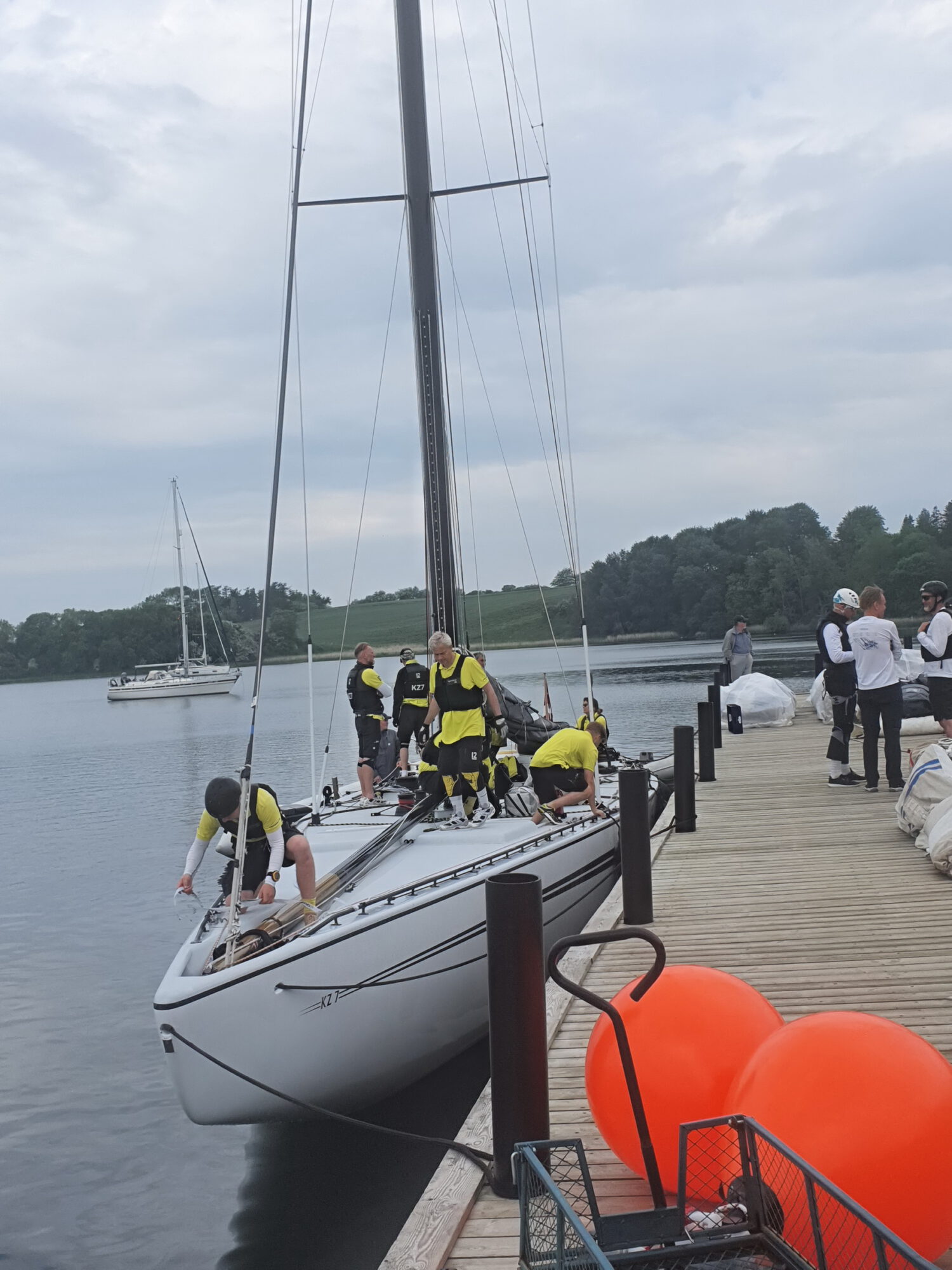 Wir hatten damit gerechnet, dass es in der Dyvig am Sonntagabend eher ruhig zugeht, doch weit gefehlt – der Hafen vor dem Badhotel war proppenvoll, wir haben eine der letzten Boxen bekommen. Unsere Lieblingsplätze länggseits waren bereits mit schönen, grossen Schiffen belegt, der ganze Steg lag voller Segelsäcke und es rannten verschiedene Gruppen, die alle gleich gekleidet waren, herum. Beim genaueren Hinsehen entpuppten sich die schönen, grossen Schiffe als Boote der 12er Klasse, die ab morgen hier eine Regatta austragen werden.