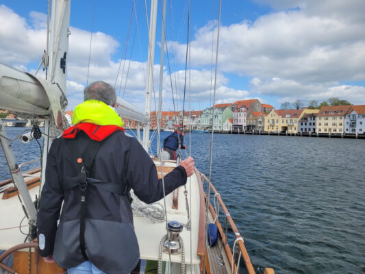 Die Fahrt nach Ærøskøbing war unspektakulär, mäßiger Wind zunächst, dann immer weniger und hinter Kegnæs Fyr musste halt wieder der Motor ran. Nach der Umrundung der Nordspitze Ærø konnten wir dann wieder Segel setzen und es wurden doch noch gemütliche Meilen bis Ærøskøbing. Wie man sieht, hat die Mannschaft alle Hände voll zu tun, der Skipper kann zufrieden sein.