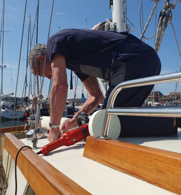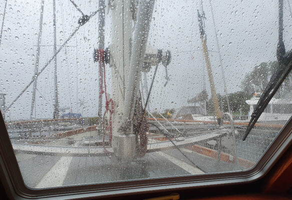 Ein kleines Problem am Ankergeschirr hatte ich mir eingefangen, dass ich mit eigenen Mitteln nicht beheben konnte. Am Donnerstag hat mich die Werft an einen Allrounder verwiesen, der sich auch zackig gemeldet hat und an Bord gekommen ist. Nach kurzer Zeit war eine gute Lösung gefunden, das nächste Problem war die Funkanlage, die ja immer wiederkehrend Alarm schlägt. Vorschlag von Seite des Allrounders: Neues Teil und neue Funke, Poul besorgt alles und morgen früh um 8 Uhr ist er da.