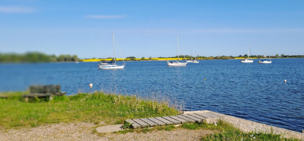 Wie auch unsere Segelfreunde Ute und Marcus hadern wir mit dem Wind. Wir müssen nach Westen und brauchen deshalb Süd- über Ost- bis Nordwinde, sind aber stabil nicht in Sicht. So werden wir uns morgen durch der Grønsund Richtung Vordingborg hangeln, es wird ein Motortag werden. Vor der großen Storstrømbroen liegt links der kleine Hafen Gåbense, wir versuchen dort einzulaufen. Der Hafenmeister hat versprochen, dass die Rinne tief genug ist. Mal sehen, ob wir nicht auflaufen.