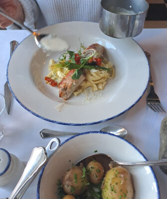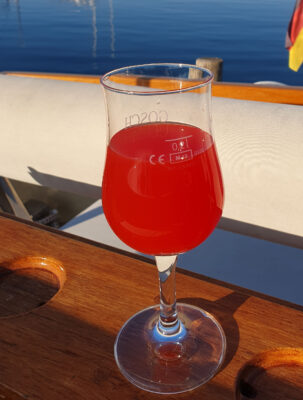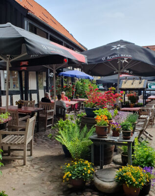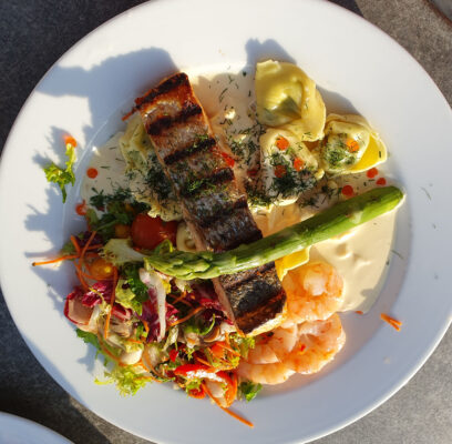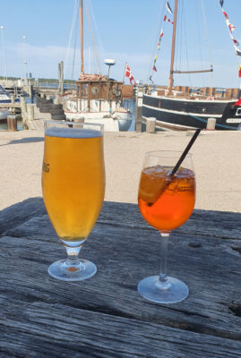 Sønderborg ist noch in der Vorsaison, im Stadthafen werden die ersten Tische und Stühle nach draußen gestellt und es gibt noch Platz am Pier. Es halt noch zu kalt zum draußen sitzen. Gegen den doch kühlen Wind ist der Außenbereich der Brasserie durch Glaswände geschützt, wir können dort den Kimi mitnehmen. Im Vergleich zum „Schleieck“ ist die Brasserie ein kulinarischer Tempel. Das Boeuf Wellington ist sehr zu empfehlen.