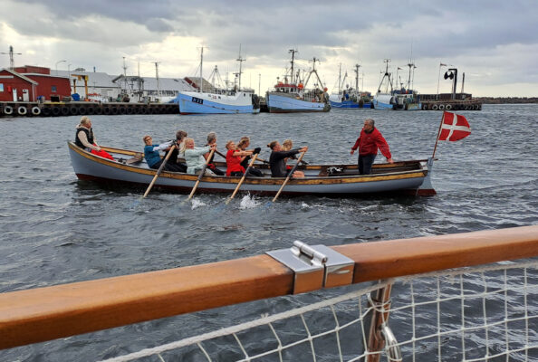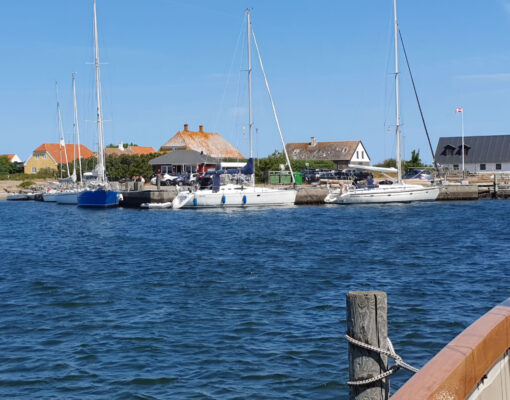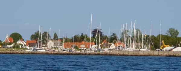 Donnerstagmorgen war Wecken um 05:26 und „Leinen los“ um 06:05 Uhr. Grund: Der Wind sollte anfangs aus Westnordwest mit 4 Bft wehen, und dann ab 11 Uhr aus West mit 5 bis 6 Bft kommen. Bei einem Kurs von 230° nach Hesnæs auf Falster konnten wir anfänglich sogar diesen Kurs segeln, aber der Wind kam immer vorlicher ein. Aber um 10:20 Uhr waren wir in Hesnæs ”Leinen fest”.