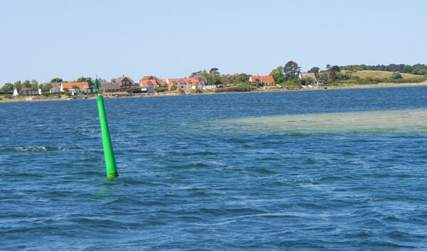Von Rudkøbing nach Bagenkop geht es bis Marstal nur durch den schmalen Tonnenstrich, rechts und links ist sofort flaches Wasser. Mein Freund Jo sagte einmal: „Die Möwen schwimmen hier nicht, die stehen im Wasser“. Dementsprechend waren es 13sm unter Motor, aber die restlichen Seemeilen bis Bagenkop war Segeln bei 5 Bft hoch am Wind angesagt. Fock und Groß haben wir gerefft, die Lambo lag ausgewogen auf dem Ruder und machte gute Fahrt.
