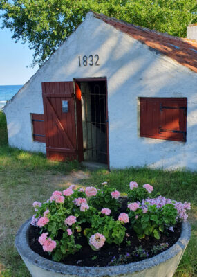 Beim Spaziergang zur Hunde- und Menschbewegung sind wir an einem alten Kalkofen vorbeigekommen, der ursprünglich in Mårup stand, abgebaut und hier wieder aufgebaut wurde. Bis ins 20ste Jahrhundert wurde hier noch auf Altvätersitte Kalk gebrannt.