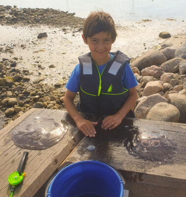 Für Kinderunterhaltung am Hafen ist gesorgt, man kann auch Minigolf spielen oder Ausreiten oder einfach faul sein. Das ist eine Krabbenrennbahn für 4 Starter. Die gefangenen Krabben werden oben in die Boxen gesetzt und dann wie beim Trabrennen die Klappen geöffnet. Die Krabbe, die zuerst ins Wasser fällt bringt dem Besitzer den ersten Preis.
