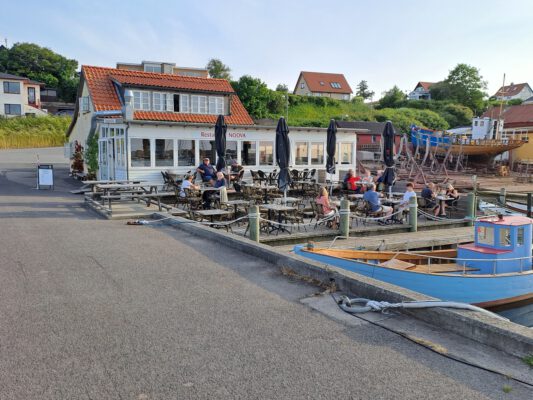 Es gibt in knapp 2 km Entfernung ein sehr schönes Restaurant Pomle Nakke https://www.pomlenakke.dk, da muss man unbedingt zeitig vorbestellen. Auf meine Frage nach einem Tisch heute Abend schaute mich der Ober mitleidig an: „Sorry, we are fully booked till Saturday next week“. Wenn nicht in der Hochsaison, wann dann!