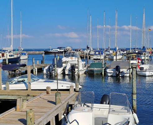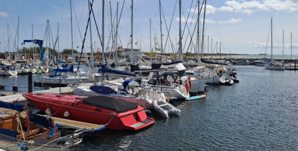 Der Hafen Klintholm auf Møn ist groß, wir haben weit hinten eine freie Box erwischt dank der frühen Ankunft um kurz nach 13 Uhr.