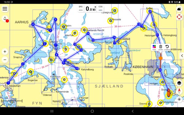 Hinter Sletterhage Leuchtturm wurde der Wind immer stärker und bei der Ansteuerung Ebeltoft kam der Wind aus Süd mit Stärke 4. Späteres Aufstehen hätte sich gelohnt.