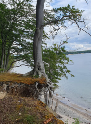 Aber wir haben die Kreideklippen erklommen, zwar nicht von See aus aber trotzdem ging es zum Teil steil nach oben. Der höchste Punkt ist der Kongsbjerg mit 137 müM. Hin und zurück waren es mit einer kleinen Pause wieder mal 4 Stunden, Alternativprogramm zum Segeln. Witzige Warnungen gibt es hier.