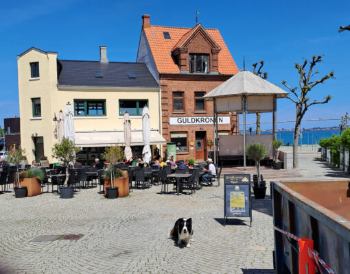Sønderborg ist noch in der Vorsaison, im Stadthafen werden die ersten Tische und Stühle nach draußen gestellt und es gibt noch Platz am Pier. Es halt noch zu kalt zum draußen sitzen. Gegen den doch kühlen Wind ist der Außenbereich der Brasserie durch Glaswände geschützt, wir können dort den Kimi mitnehmen. Im Vergleich zum „Schleieck“ ist die Brasserie ein kulinarischer Tempel. Das Boeuf Wellington ist sehr zu empfehlen.