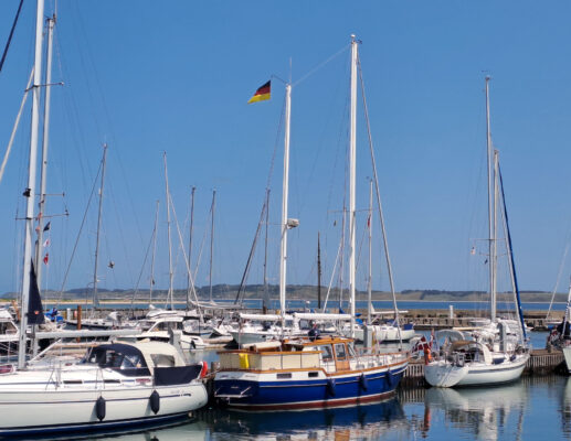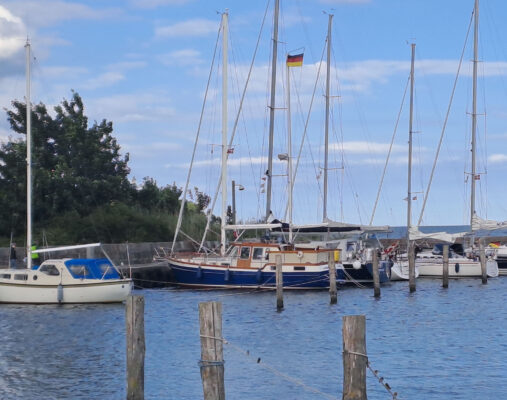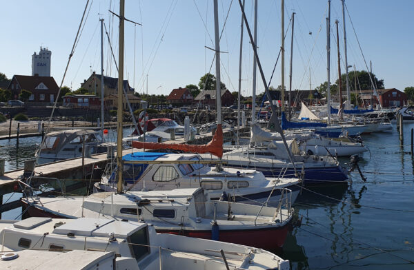 Seit Samstag sind wir hier eingeweht, es ballert draußen mit 6 bis 7 Bft aus Südwest und unser nächstes Ziel ist Klintholm, hoch am Wind für die Lambo. Das ist kein Wetter für uns. Vielleicht gibt es morgen ein Segelfenster für uns, sonst bleiben wir noch bis Mittwoch.