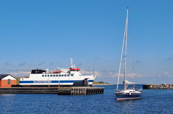 Donnerstagmorgen war Wecken um 05:26 und „Leinen los“ um 06:05 Uhr. Grund: Der Wind sollte anfangs aus Westnordwest mit 4 Bft wehen, und dann ab 11 Uhr aus West mit 5 bis 6 Bft kommen. Bei einem Kurs von 230° nach Hesnæs auf Falster konnten wir anfänglich sogar diesen Kurs segeln, aber der Wind kam immer vorlicher ein. Aber um 10:20 Uhr waren wir in Hesnæs ”Leinen fest”.