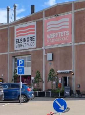 Der Hafen Klintholm ist als Zwischenstation für uns ganz brauchbar, aber es gibt keinen Kaufmann mehr, nur noch ein Kiosk. Das Restaurant hatte nur ein Menu im Angebot, 8! Gänge für 575 dkk. Ein Sandplatz mit bunten Buden und allerlei Take Aways rundete die kulinarischen Angebote ab.